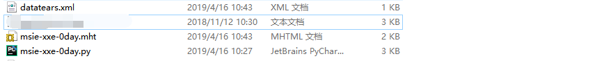 以上脚本会在当前目录下生成两个文件,”msie-xxe-0day.mht”和”datatears.xml”